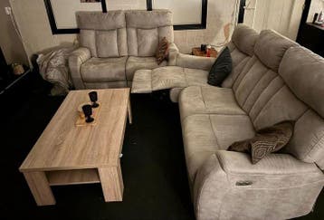 Bankstel bij de 3zits bank kan je allebei de kanten door een knop de voeten omhoog of omlaag doen wegens verhuizing mogen ze gratis weg!