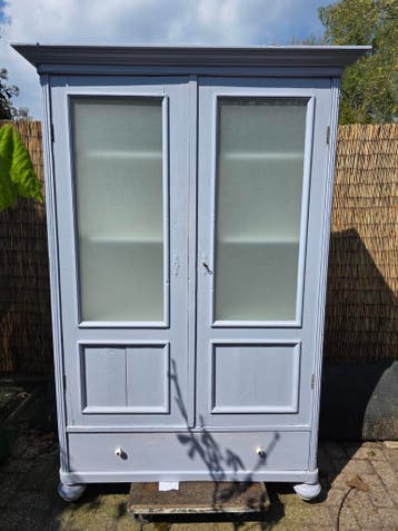 Deze leuke kast mag gratis worden opgehaald . Er mankeert niets aan, ik heb de glasdeuren beplakt met melkglas folie deze is er makkelijk af te halen. Wie geeft deze leuke kast een nieuw plekje? De ka