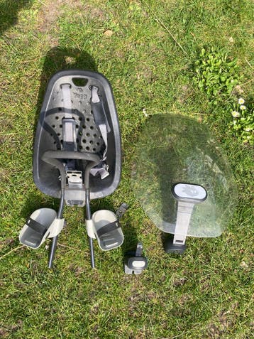 Voorzitje yepp inclusief windscherm, goed gebruikt en mn zoon knaagde soms wat aan het schuim om de stang. Dus dat is wat kapot, wij bonden daar een doekje omheen. Hopelijk kan er nog een kindje lekke