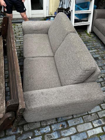 Twee banken, goed gebruikt. De ene bank is 185 x 87 x 85 cm en de andere is 220 x 87 x 85 cm. Ze zijn van stof.