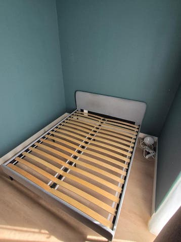 Gratis ikea slattum 160x200 bed frame met lattenbodems. Lichtgrijs. Nog in goede staat.