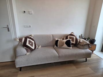 Beige couch in very used condition for self pick-up on 2nd floor. Burn on left arm rest and fabric on underframe is destroyed as visible in the picture. Measurements ca. 210X95cm cushions not included