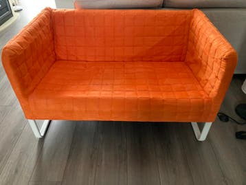 Gratis af te halen: zeer mooie oranje kinderbank in zeer goede staat. B: 1.20 D: 0.75 H: 0.70