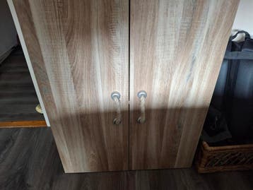 Deze grote hangkast biedt veel opbergruimte voor kleding en andere spullen. De kast is voorzien van een hangruimte en een legplank, ideaal voor het organiseren van uw garderobe. De kast is gebruikt, m