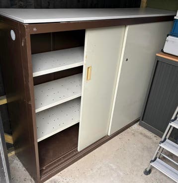 Gratis af te halen , opbergkast voor bv een schuur . Afmeting : 194 cm breed, 138 cm hoog 48 cm diep materiaal : staal