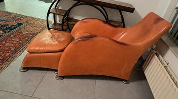 Relax stoel met voetenbank. Gebruikt. Mag op nieuw bekleding worden