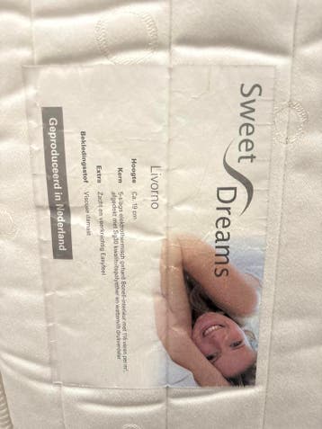 Comfortabel sweet dreams livorno matras, 90x200 cm, met een hoogte van circa 19 cm. Het matras heeft een 5-slags elektro-thermisch gehard bonell-interieur met 116 veren per m², afgedekt met s-20 kwali
