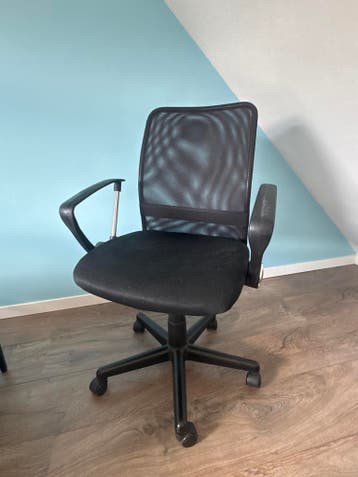 Deze comfortabele zwarte bureaustoel is ideaal voor thuiswerken of op kantoor. De stoel heeft een ademende gaasrugleuning en is in hoogte verstelbaar voor een optimale zithouding. De wieltjes zorgen v