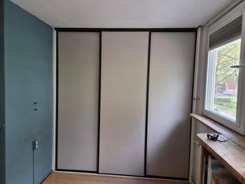 Gratis af te halen voor woensdagmiddag 22/04: een schuifdeurkast panelen in uitstekende staat. Kleur is taupe, grijs. Deze kastdeuren zijn perfect voor slaapkamers of overloop. Inclusief rolsysteem de