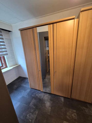 Gratis op te halen garderobekast met drie deuren in verband met verhuizing. De afwerking voor de rechterbovenkant is ook los aanwezig, maar nu niet te zien op de foto. De kast staat op de eerste verdi