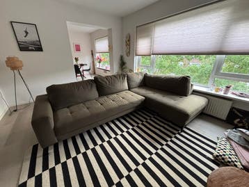 Deze groene hoekbank van goossens kan nog een ronde mee. De bank moet wel goed gereinigd worden, vandaar dat hij gratis af te halen is.