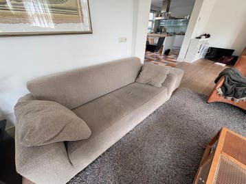 Mooie en comfortabele bank en loveseat set in een neutrale kleur. Status is gebruikt, slijtage van de stof op zit gedeelte. Bank:: 210x 90 cm love seat / fauteuil: 120 x 90 cm