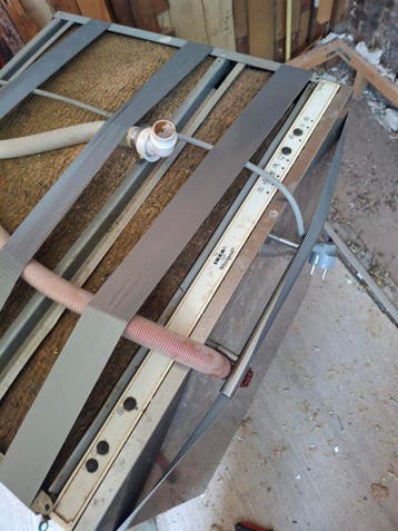 Deze afwasmachine is oud, maar werkt nog wel. De machine is klaar om opgehaald te worden.