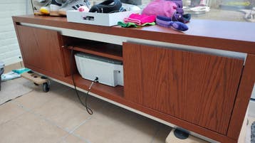 Gratis af te halen: audio video meubel. Gebruikt maar kan nog een rondje mee. Het meubel heeft twee schuifdeuren en een open vak in het midden.
