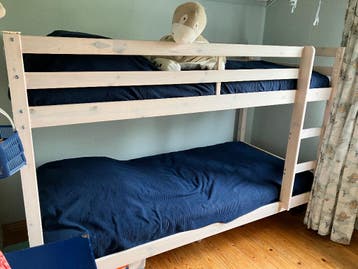 Stapelbed vipack pino 200x90 (leen bakker); weinig gebruikt; gratis op te halen, in half gedemonteerde staat, is eenvoudig weer te monteren.