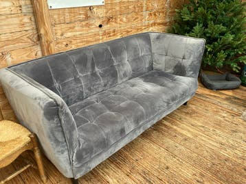 Gratis af te halen ivm verhuizing. Een prima grijze 2,5 zitsbank met een stoffen bekleding. De bank heeft een gecapitonneerde rugleuning en zitting. De armleuningen lopen schuin omhoog. De bank staat